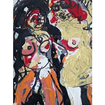 The materials used are acrylic paint, pencils, and markers on paper. The dimensions are 42 x 32 cm and 3.5 cm thick (this includes the passepartout and black frame). The artwork itself is 29 x 20 cm. Dated and hand-signed in 2019. Directly from the studio. If you want to see the artwork in person, you are always welcome in Weert (NL).