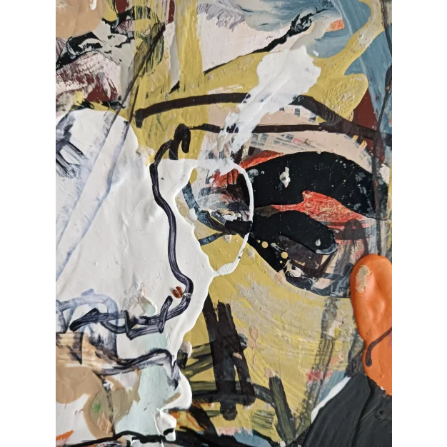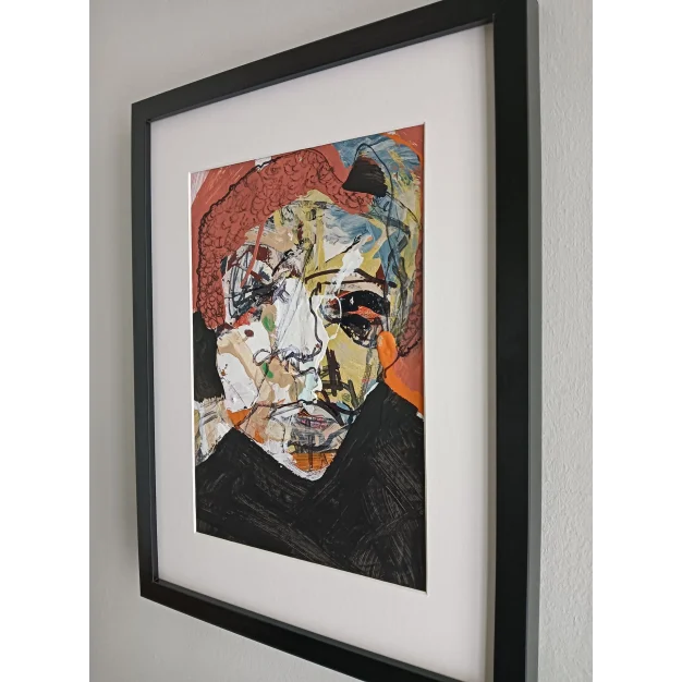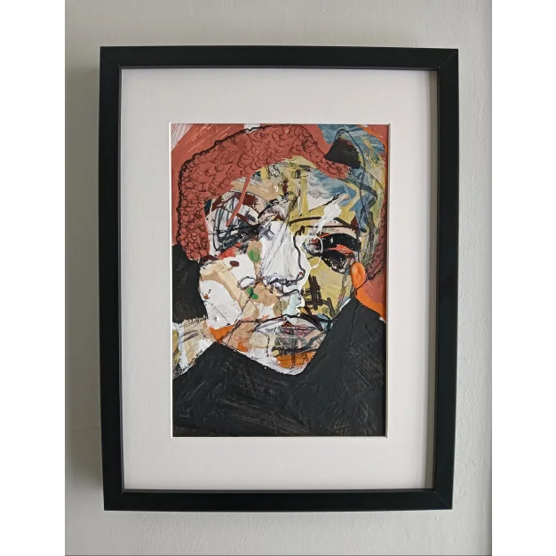 Dieses expressive Werk wurde mit Acrylfarbe, Lackfarbe und Marker auf Karton erstellt. Die Abmessungen betragen 42 x 32 cm und sind 3,5 cm dick (dies beinhaltet Passepartout und schwarzen Rahmen). Das Werk selbst hat die Maße 30 x 20 cm. Direkt aus dem Atelier in Weert (NL).