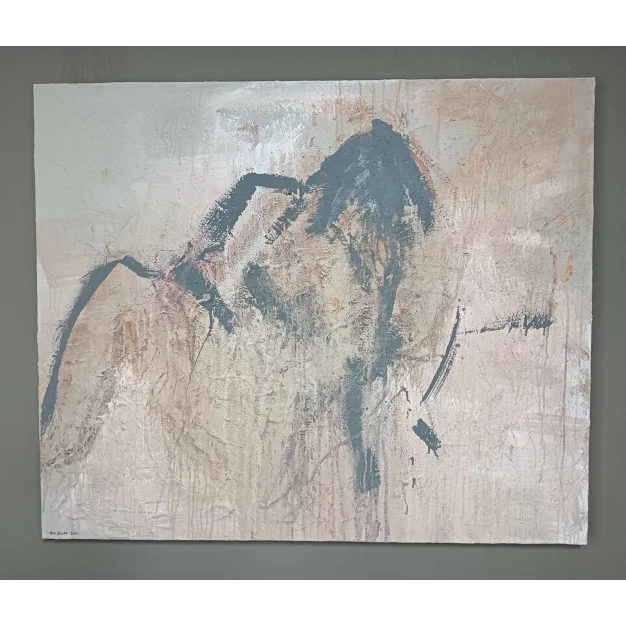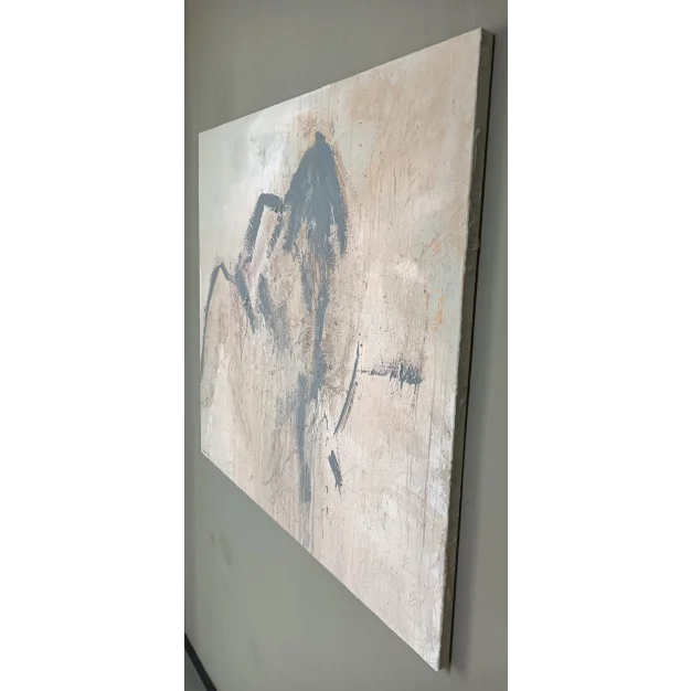 This abstract painting is made with acrylic paint on a canvas. The use of thicker layers of paint and sand gives the painting a beautiful relief. The dimensions are 120 x 100 cm and it is 2.5 cm thick. Dated and hand-signed in 2025. Directly from the studio in Weert (NL).
