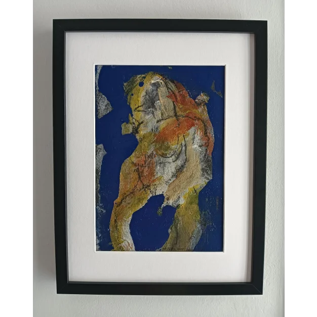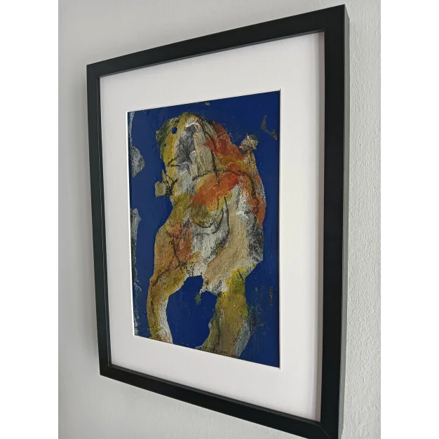 This framed abstract work is made with acrylic paint, lacquer paint, and charcoal on a linen canvas. The dimensions are 42 x 32 cm and it is 3.5 cm thick (this includes passe-partout and black frame). The work itself is 29 x 20 cm. Dated and hand-signed in 2025. Directly from the studio in Weert (NL). If you would like to see more works (around 150 pieces, large and small) by me, please visit my website: www.robjacobs.art