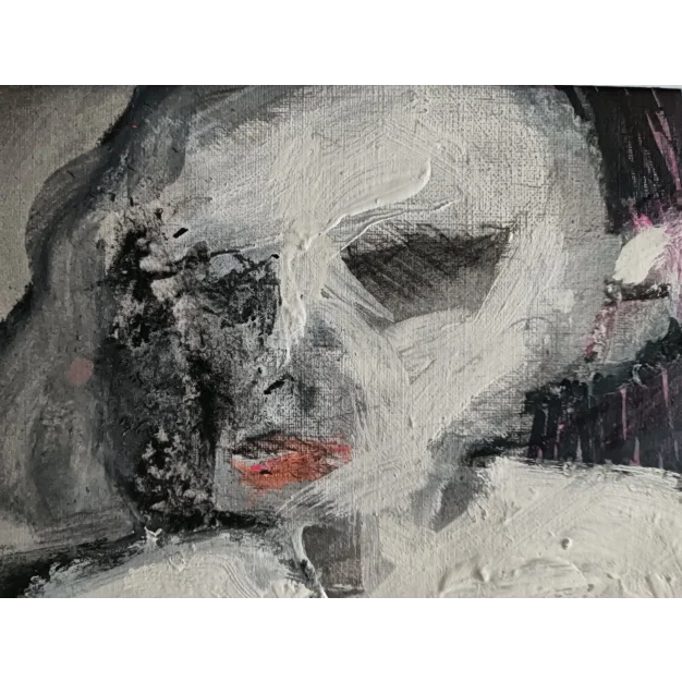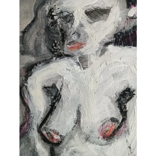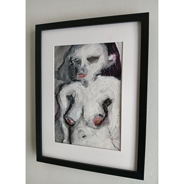 This framed work is made with acrylic paint, oil pastel, charcoal, and marker on linen paper. The dimensions are 42 x 32 cm and it is 3.5 cm thick (this includes the mat and black frame). Dated and hand-signed in 2025. Directly from the artist's studio.
