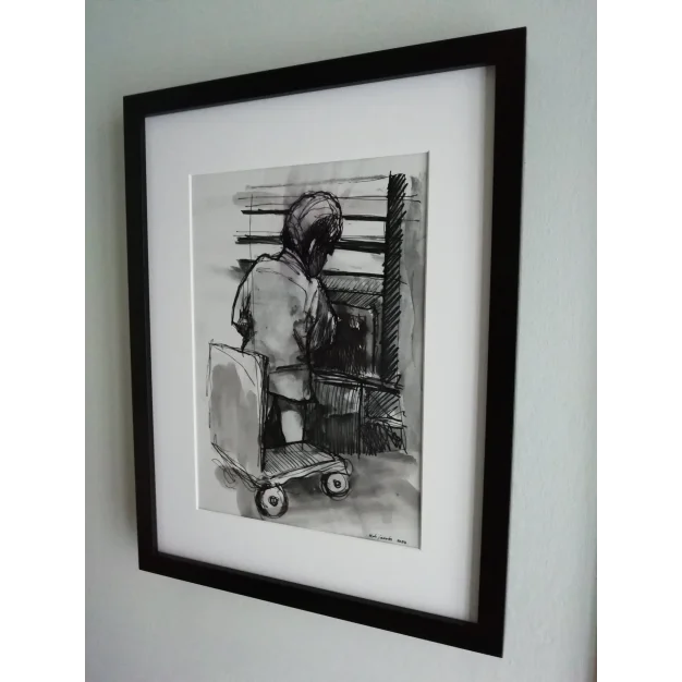 This framed work is painted with acrylic paint, marker, and ink on cardboard. The dimensions are 42 x 32 cm and 3.5 cm thick (this includes the passe-partout and black frame). The work itself is 29 x 20 cm. Dated and signed in 2024. Directly from the studio. If you want to see the work live, you are always welcome in Weert (NL).