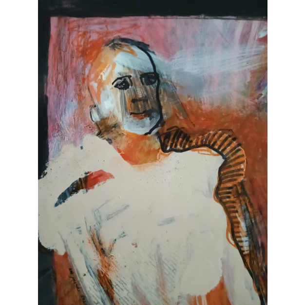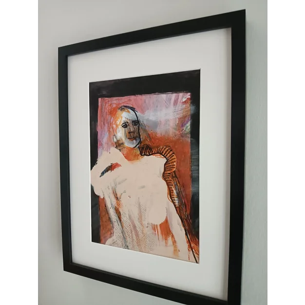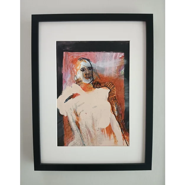 This framed work is made with acrylic paint, lacquer paint, charcoal, and marker on cardboard. The dimensions are 42 x 32 cm and it is 3.5 cm thick (this includes passe-partout and black frame). The work itself is 29 x 20 cm. Dated and hand-signed in 2025. Directly from the studio in Weert (NL). If you want to see more works by me, please visit my website: www.robjacobs.art