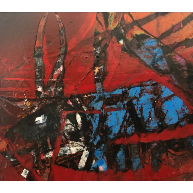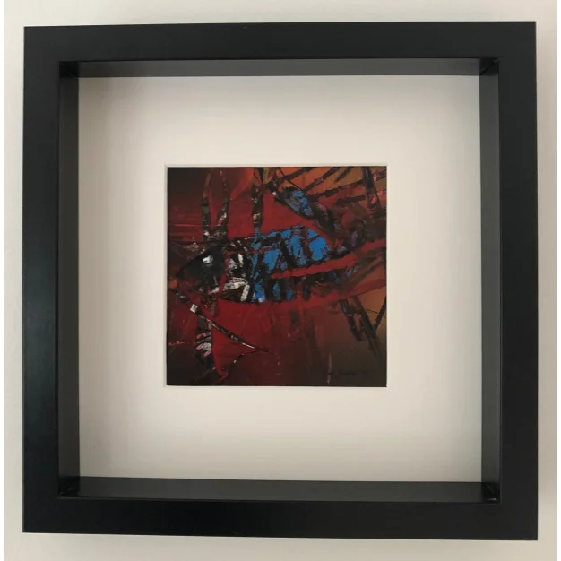 This small framed piece is made with acrylic paint, spray paint, pencil, and marker on watercolor paper. The dimensions are 25 x 25 cm and it is 4 cm thick (this includes the mat and black frame). The piece itself is 12 x 12 cm. Dated and hand-signed in 2019. Directly from the studio. If you would like to see more works (around 100 pieces, large and small) by me, please visit my website: www.robjacobs.art