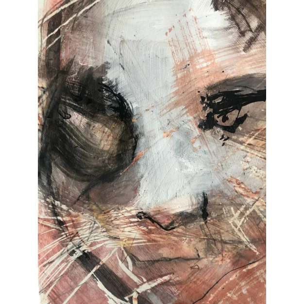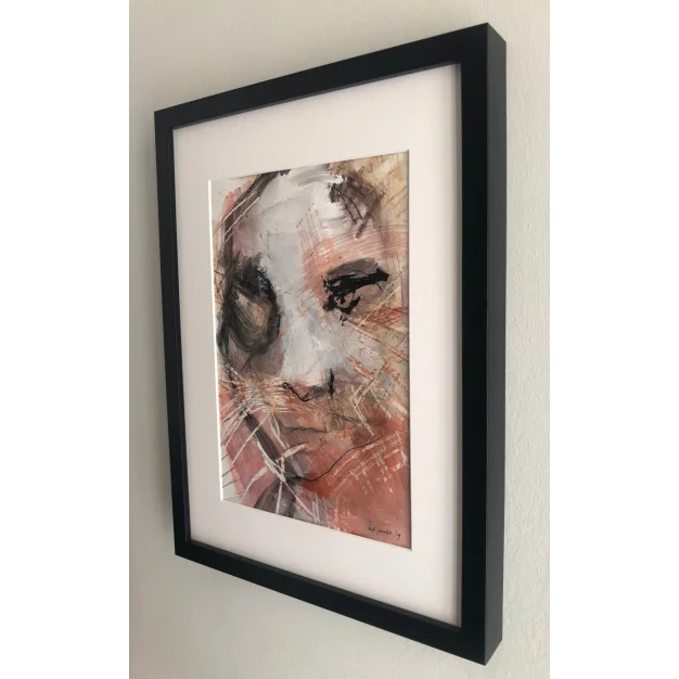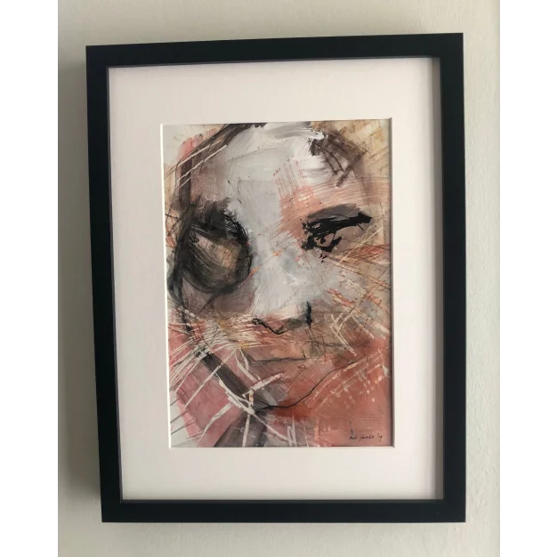 This expressive work is painted with acrylic paint, pencil, marker, and oil pastel on cardboard. The dimensions are 42 x 32 cm and 3.5 cm thick (this includes the passe-partout and black frame). The work itself is 29 x 20 cm. Dated and signed in 2019. Directly from the studio. If you want to see the work live, you are always welcome in Weert (NL).