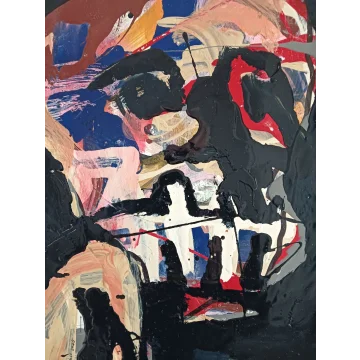 This expressive painting was made in 2019. Used materials are acrylic paint, marker, pencil, and chalk on cardboard. The dimensions are 32 x 42 cm and 3.5 cm thick (this includes passe-partout and black frame). The work itself is 20 x 29 cm. Directly from the studio. If you want to see the work live, you are always welcome in Weert (NL).