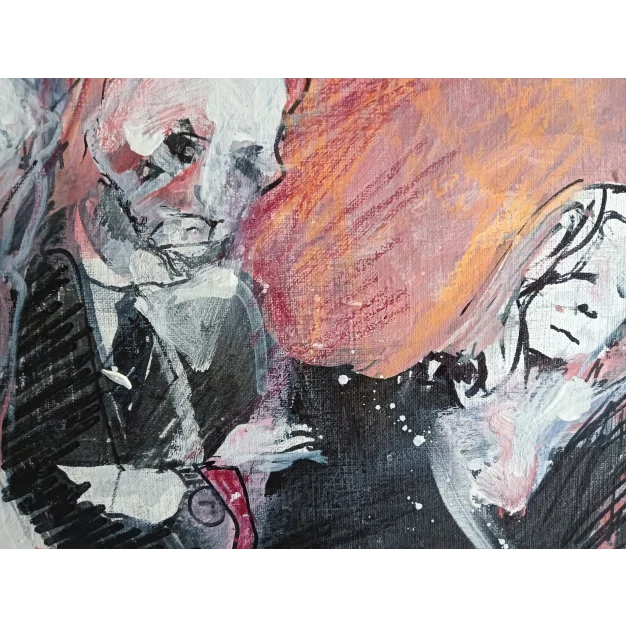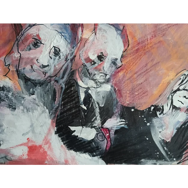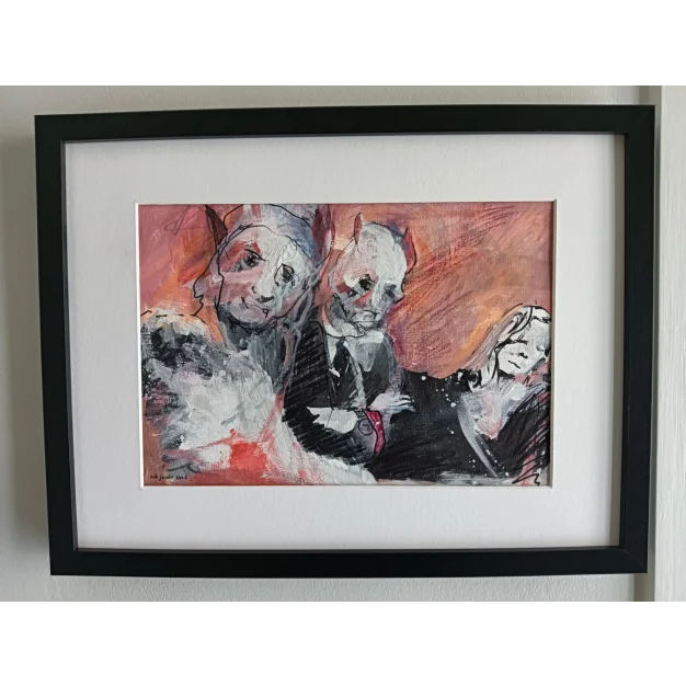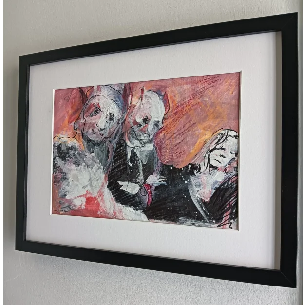 This framed work is made with acrylic paint, marker, and oil pastel on linen paper. The dimensions are 42 x 32 cm and it is 3.5 cm thick (this includes the mat and black frame). The work itself is 29 x 20 cm. Dated and hand-signed in 2025. Directly from the artist's studio.