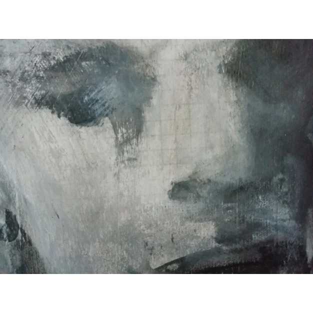 This work is painted with acrylic paint and charcoal on paper. The dimensions are 25 x 25 cm and 4.5 cm thick (this includes passe-partout and black frame). The work itself is 12 x 12 cm. Dated and signed in 2024. Directly from the studio. If you want to see the work live, you are always welcome in Weert (NL).