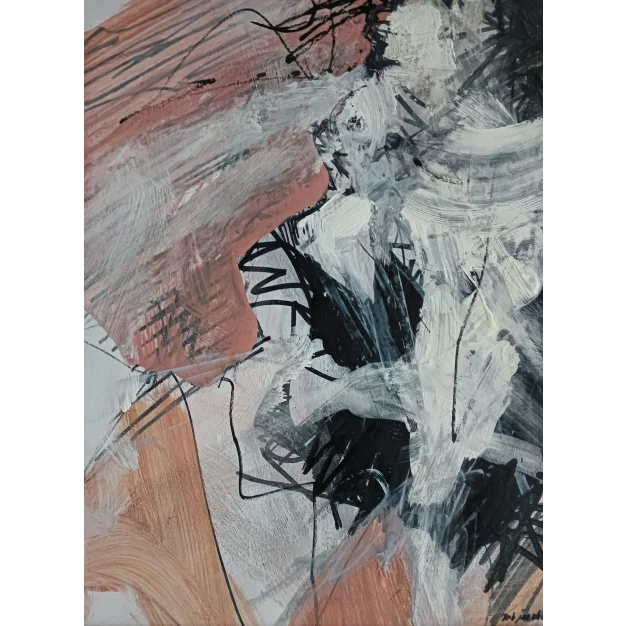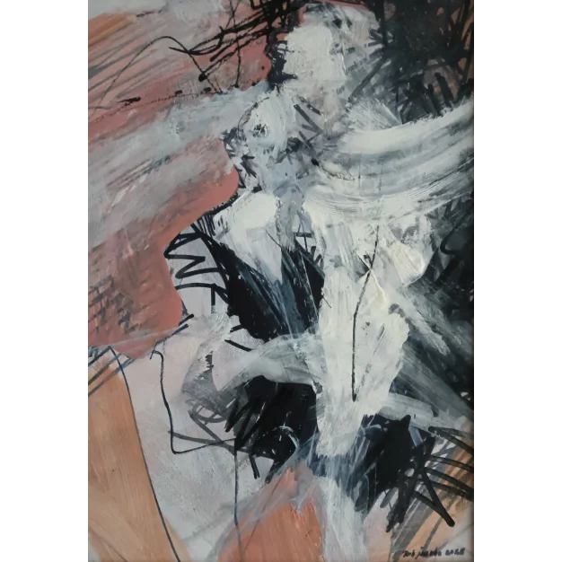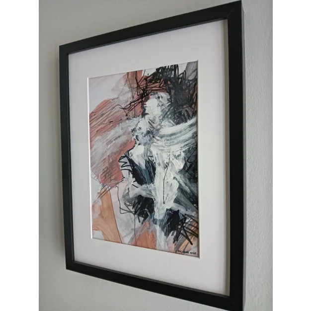 This framed work is made with acrylic paint and marker on cardboard. The dimensions are 42 x 32 cm and it is 3.5 cm thick (this includes the mat and black frame). The work itself is 29 x 20 cm. Dated and hand-signed in 2025. Directly from the artist's studio.