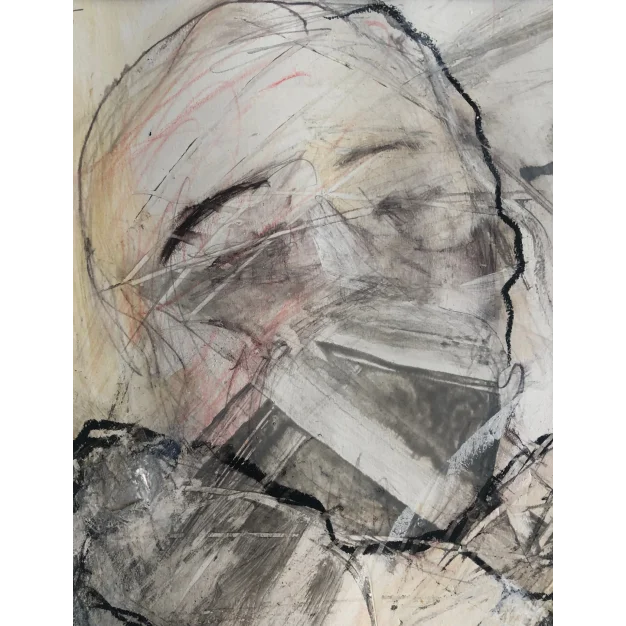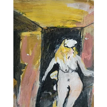 This framed work is painted with acrylic paint, pencil, marker, and oil pastel on cardboard. The dimensions are 42 x 32 cm and 3.5 cm thick (this includes the mat and black frame). The work itself is 29 x 20 cm. Dated and signed in 2019. Directly from the studio. If you want to see the work live, you are always welcome in Weert (NL).