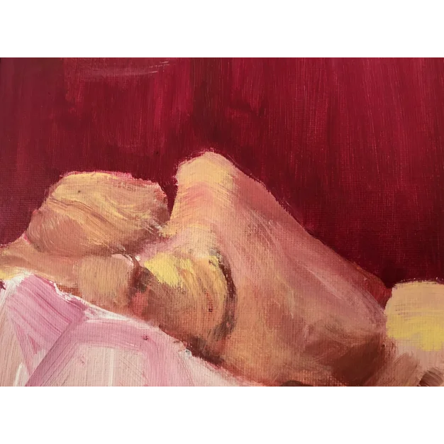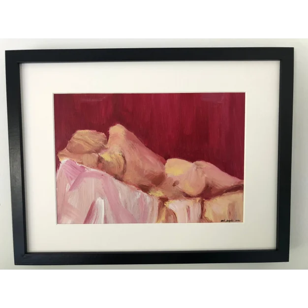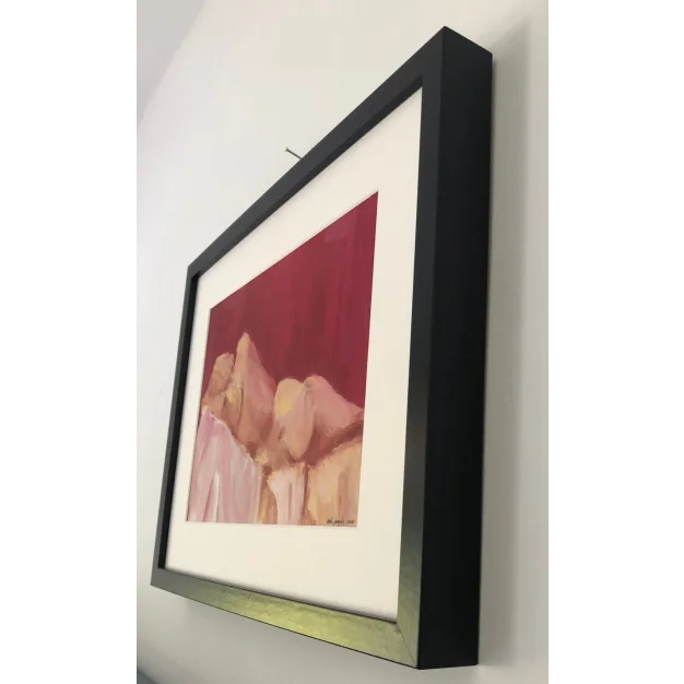 This framed work is made with acrylic paint on a canvas. The dimensions are 42 x 32 cm and it is 3.5 cm thick (this includes the mat and black frame). The work itself is 29 x 20 cm. Dated and hand-signed in 2021. Directly from the artist's studio.