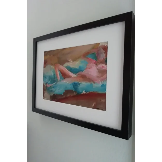 This work is painted with acrylic paint on a canvas. The dimensions are 32 x 42 cm and 3.5 cm thick (this includes the mat and black frame). The work itself is 20 x 29 cm. Dated and signed in 2023. Directly from the studio. If you want to see the work live, you are always welcome in Weert (NL).