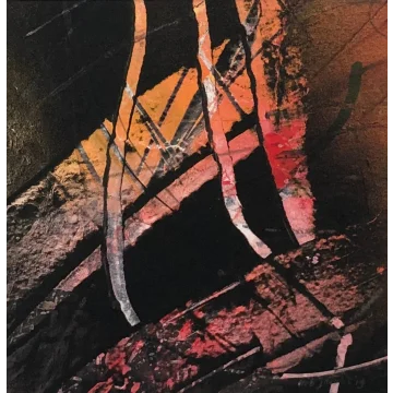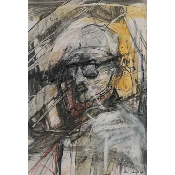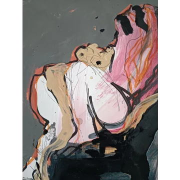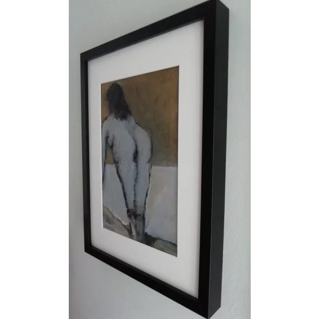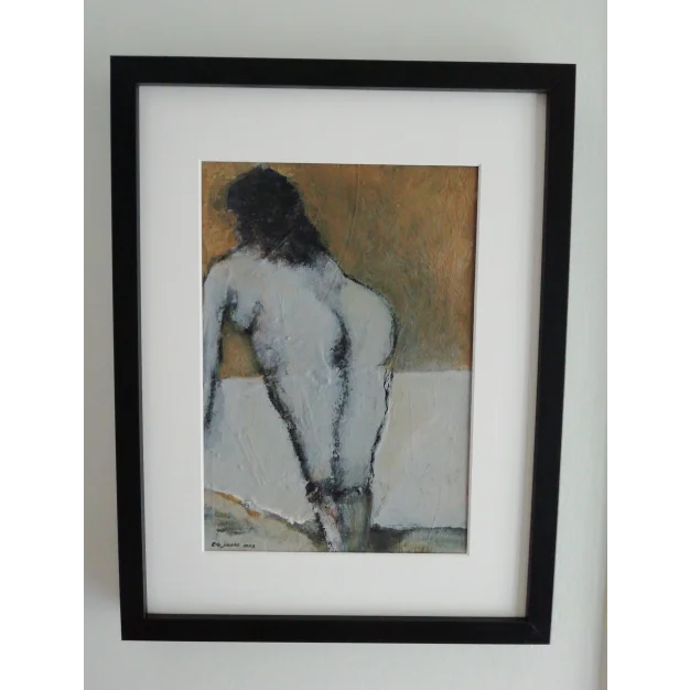 This framed work is made with acrylic paint and charcoal on a canvas. The dimensions are 42 x 32 cm and it is 3.5 cm thick (this includes the mat and black frame). The work itself is 29 x 20 cm. Dated and hand-signed in 2023. Directly from the artist's studio.