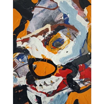 Dit werk is geschilderd met acryl verf en houtskool op canvas doek. De afmeting is 42 x 32 cm en 3,5 cm dik (dit is inclusief passepartout en zwarte lijst). Het werk zelf is 29 x 20 cm. Gedateerd en gesigneerd in 2023. Rechtstreeks uit het atelier. Wil je het werk life zien, dan ben je altijd van harte welkom in Weert (NL).