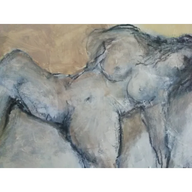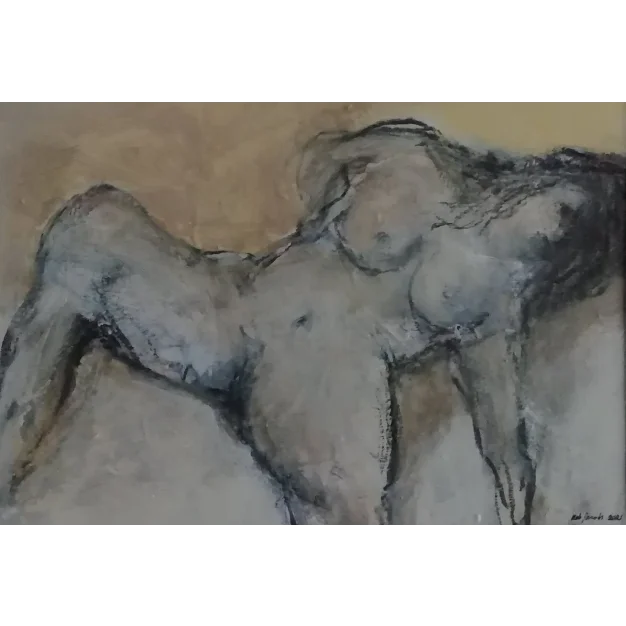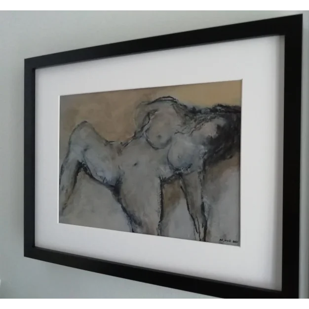 This framed work is painted with acrylic paint and charcoal on a canvas. The dimensions are 32 x 42 cm and 3.5 cm thick (this includes the mat and black frame). The work itself is 20 x 29 cm. Dated and signed in 2021. Directly from the studio. If you want to see the work live, you are always welcome in Weert (NL).