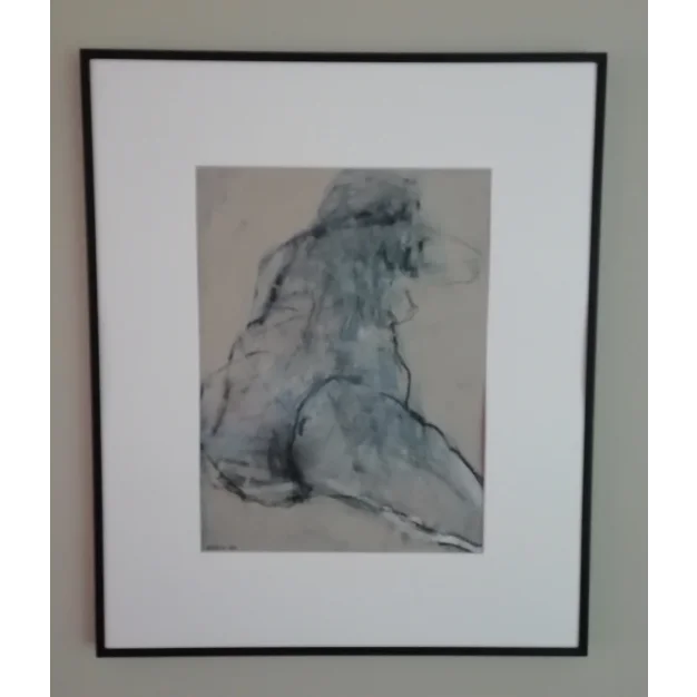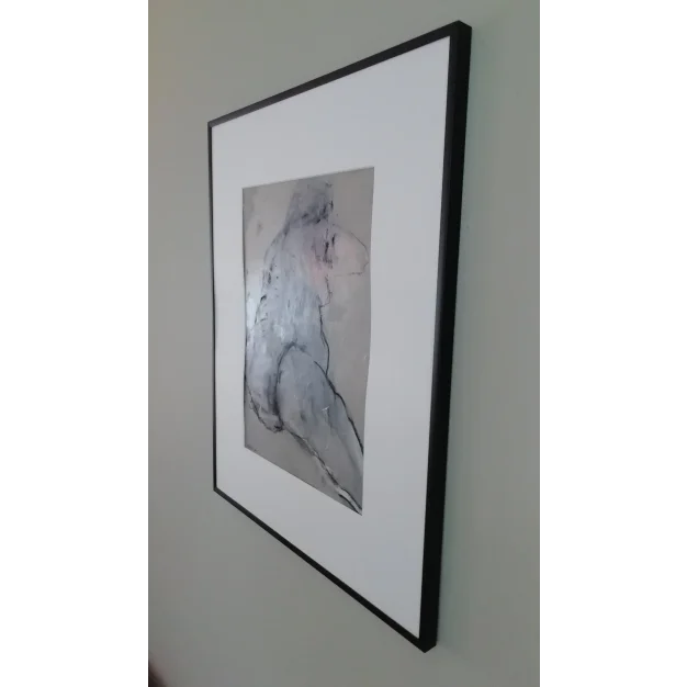 This framed painting is made with acrylic paint and charcoal on a canvas. The dimensions are 61 x 51 cm and it is 2 cm thick (this includes the mat and black frame). Dated and hand-signed in 2023. Straight from the studio in Weert (NL).