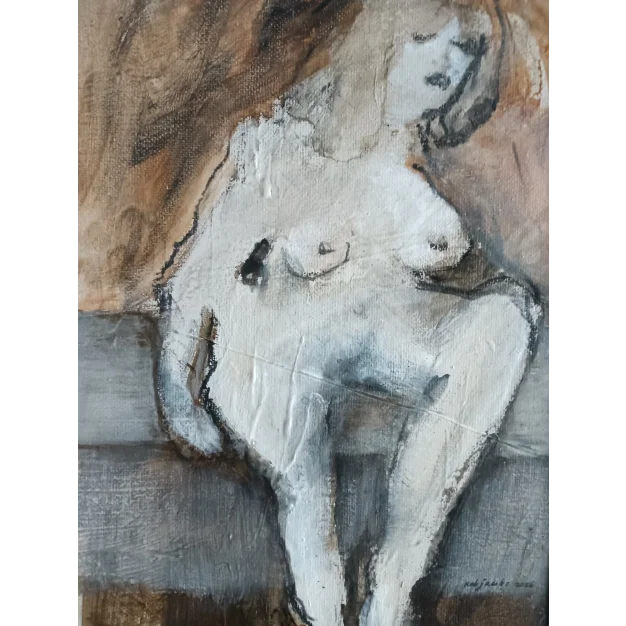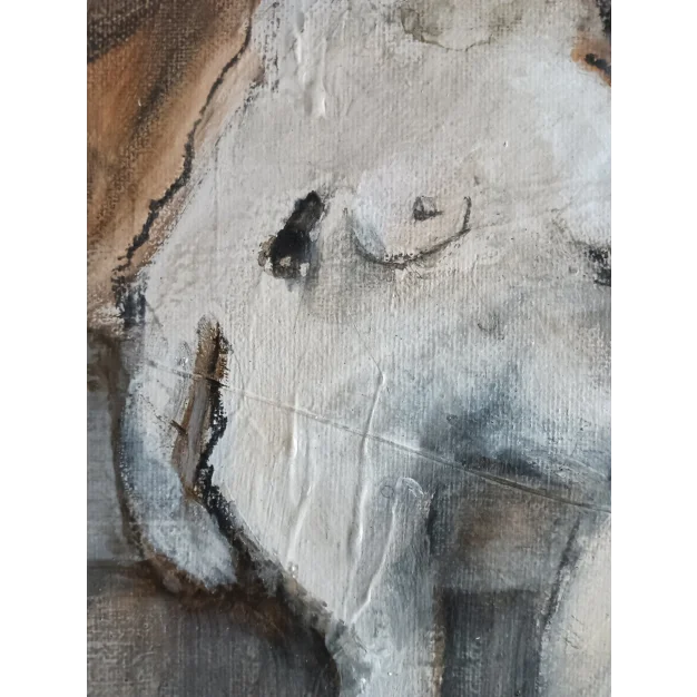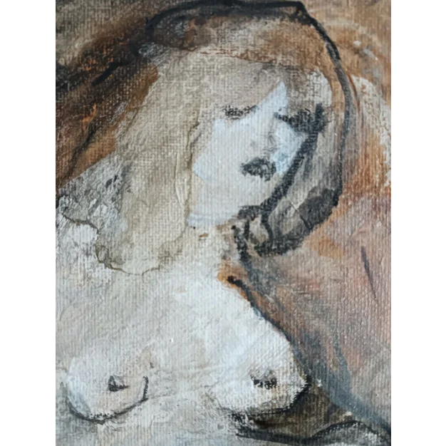 This framed work is made with acrylic paint and charcoal on a canvas. The dimensions are 42 x 32 cm and it is 3.5 cm thick (this includes passe partout and black frame). The work itself is 30 x 20 cm. Dated and hand-signed in 2026. Directly from the studio in Weert (NL).