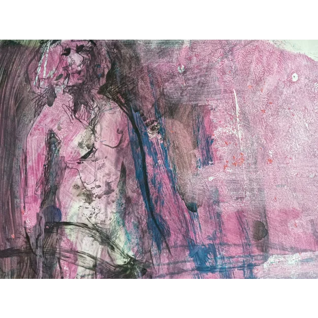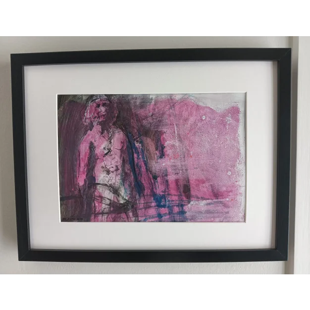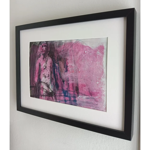 This framed painting is made with acrylic paint and marker on paper. The dimensions are 42 x 32 cm and it is 3.5 cm thick (this includes the mat and black frame). The work itself is 29 x 20 cm. Dated and hand-signed in 2025. Directly from the studio in Weert (NL).