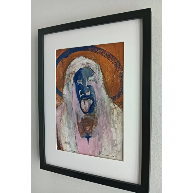 This framed work is made with acrylic paint and marker on cardboard. The dimensions are 42 x 32 cm and it is 3.5 cm thick (including passe-partout and black frame). The work itself is 29 x 20 cm. Dated and hand-signed in 2025. In tribute to Ozzy Osbourne (1948 - 2025). Directly from the studio in Weert (NL). If you would like to see more works (around 150 pieces, large and small) by me, please visit my website: www.robjacobs.art