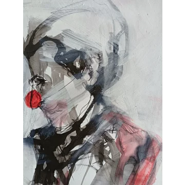 Dit werk is geschilderd met acryl verf op een canvas doek. De afmeting is 42 x 32 cm en 3,5 cm dik (dit is inclusief passepartout en zwarte lijst). Het werk zelf is 29 x 20 cm. Gedateerd en gesigneerd in 2023. Rechtstreeks uit het atelier. Wil je het werk life zien, dan ben je altijd van harte welkom in Weert (NL).