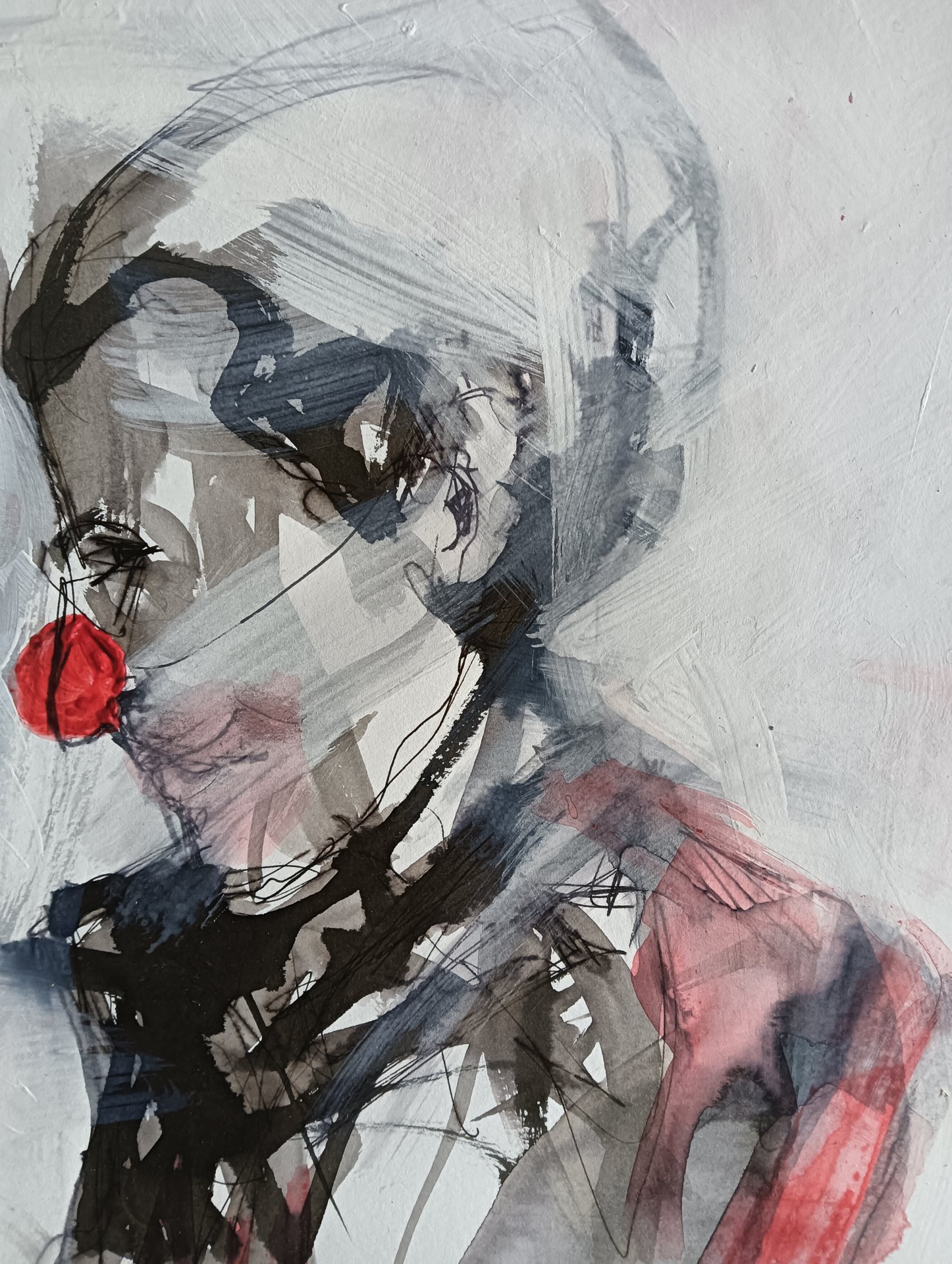 Dit werk is geschilderd met acryl verf op een canvas doek. De afmeting is 42 x 32 cm en 3,5 cm dik (dit is inclusief passepartout en zwarte lijst). Het werk zelf is 29 x 20 cm. Gedateerd en gesigneerd in 2023. Rechtstreeks uit het atelier. Wil je het werk life zien, dan ben je altijd van harte welkom in Weert (NL).