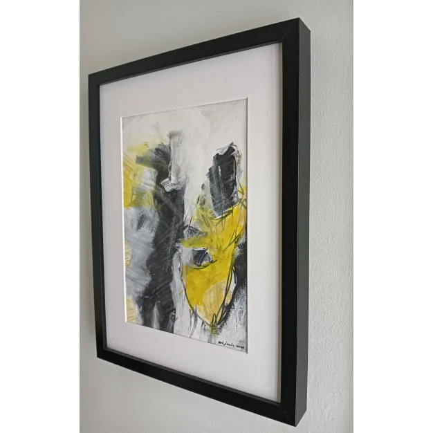 This framed work is made with acrylic paint, marker, and oil pastel on cardboard. The dimensions are 42 x 32 cm and it is 3.5 cm thick (this includes the mat and black frame). The work itself is 29 x 20 cm. Dated and hand-signed in 2025. Directly from the artist's studio.