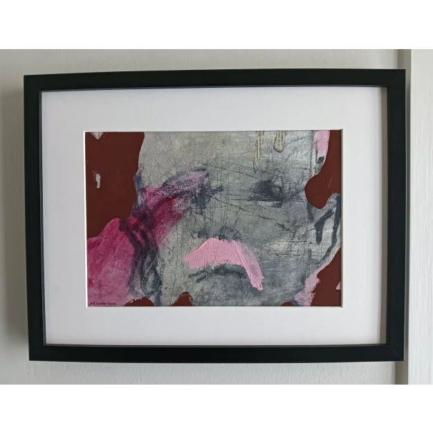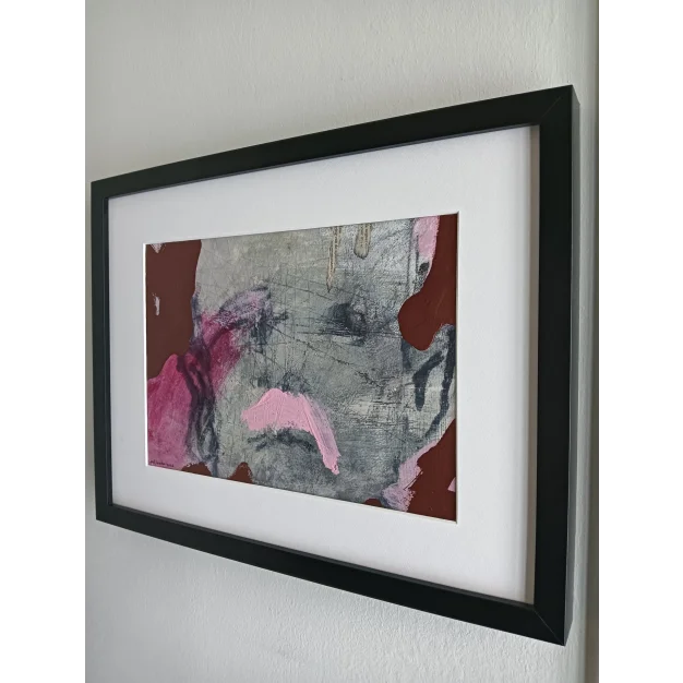 This framed work is made with acrylic paint, lacquer, and marker on watercolor paper. The dimensions are 42 x 32 cm and it is 3.5 cm thick (this includes passe partout and black frame). The work itself is 30 x 20 cm. Dated and hand-signed in 2026. Directly from the studio in Weert (NL).