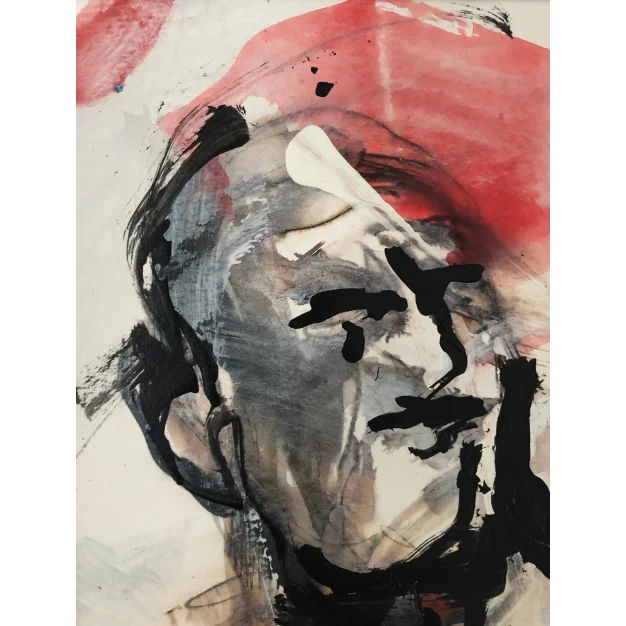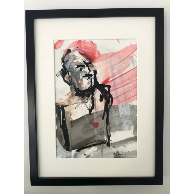 This framed work is made with acrylic paint and marker on paper. The dimensions are 42 x 32 cm and it is 3.5 cm thick (this includes the mat and black frame). The work itself is 29 x 20 cm. Dated and hand-signed in 2017. Directly from the artist's studio.