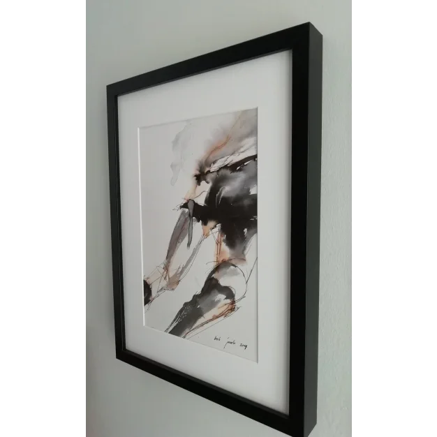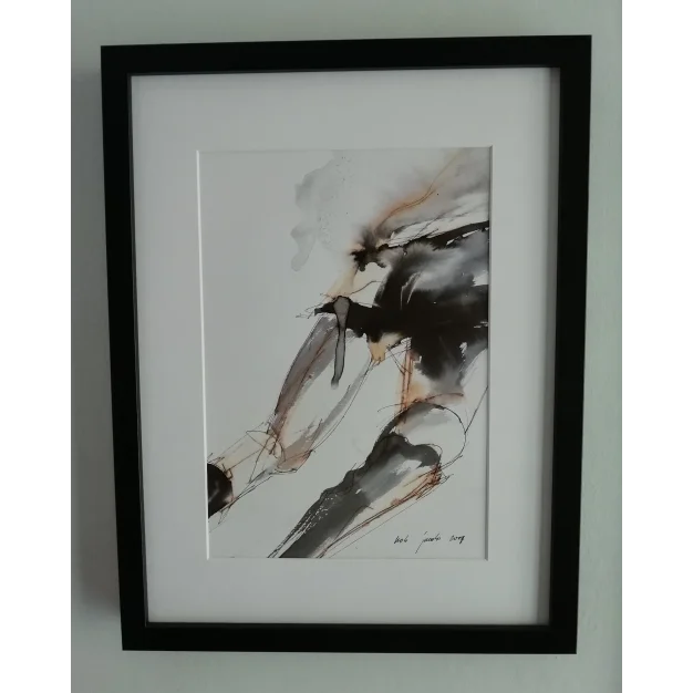 This framed work is painted with acrylic paint, ink, and marker on watercolor paper. The dimensions are 42 x 32 cm and 3.5 cm thick (this includes the mat and black frame). The work itself is 29 x 20 cm. Dated and signed in 2017. Directly from the studio. If you want to see the work live, you are always welcome in Weert (NL).