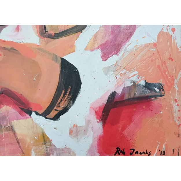 This painting is made with acrylic paint, spray paint, and texture paint on a linen canvas. The dimensions are 120 x 100 cm and it is 2.5 cm thick. Due to the texture paint, the painting has a bit more relief. Dated and hand-signed in 2018. Directly from the studio. If you would like to see more works (around 100 pieces, large and small) by me, click on "Rob Jacobs" or visit my website: www.robjacobs.art. If you want to see the work live, you are always welcome in Weert (NL).