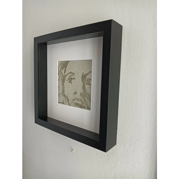 This framed work is painted with acrylic paint on a coarse linen canvas. The dimensions are 25 x 25 cm and 4.5 cm thick (this includes the passe-partout and black frame). The work itself is 12 x 12 cm. Dated and signed in 2022. Directly from the studio in Weert. If you want to see the work live, you are always welcome in Weert (NL).