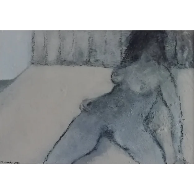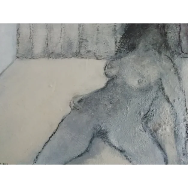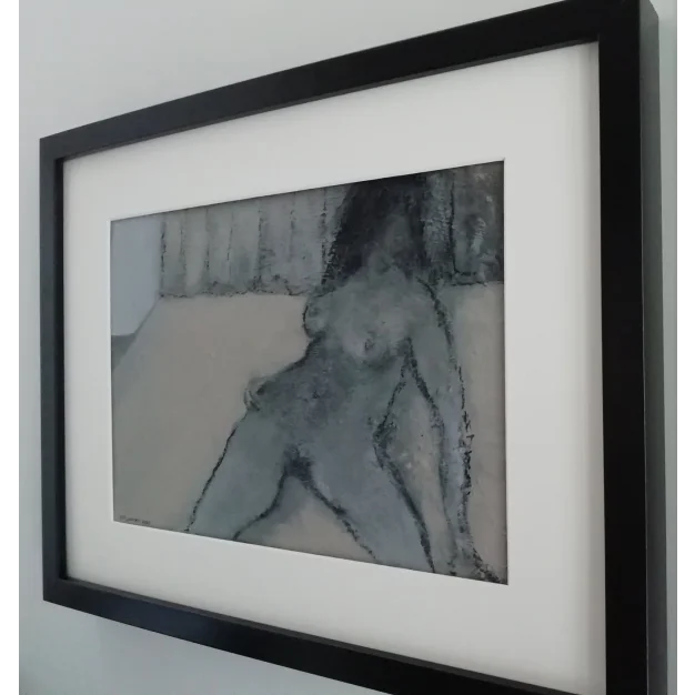 This work is painted with acrylic paint and charcoal on a linen canvas. The dimensions are 32 x 42 cm and 3.5 cm thick (this includes the mat and black frame). The work itself is 20 x 29 cm. Dated and signed in 2023. Directly from the studio. If you want to see the work live, you are always welcome in Weert (NL).
