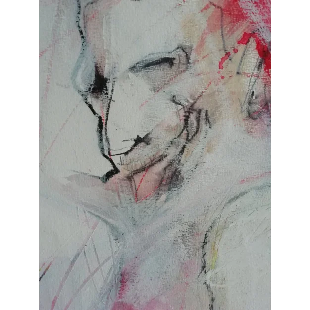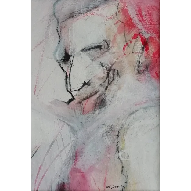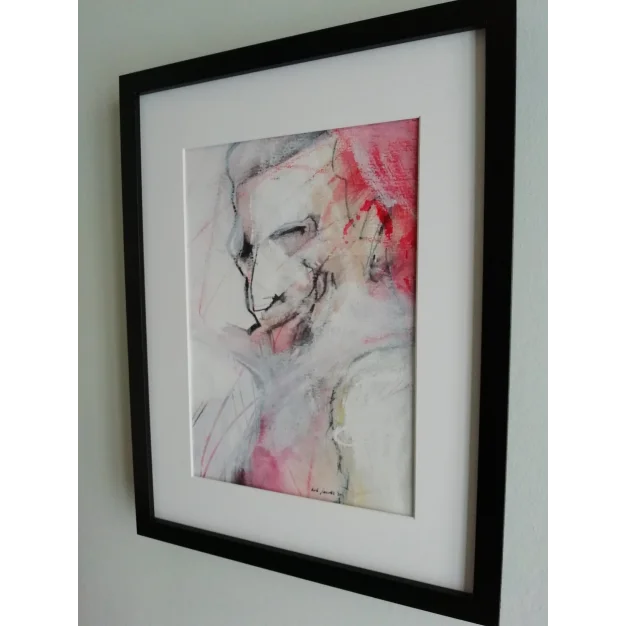 This expressive work is painted with acrylic paint, marker, oil pastel, and charcoal on watercolor paper. The dimensions are 42 x 32 cm and 3.5 cm thick (this includes the passe-partout and black frame). The work itself is 29 x 20 cm. Dated and signed in 2020. Directly from the studio. If you want to see the work live, you are always welcome in Weert (NL).