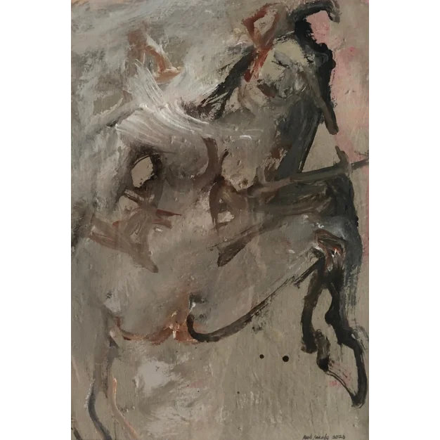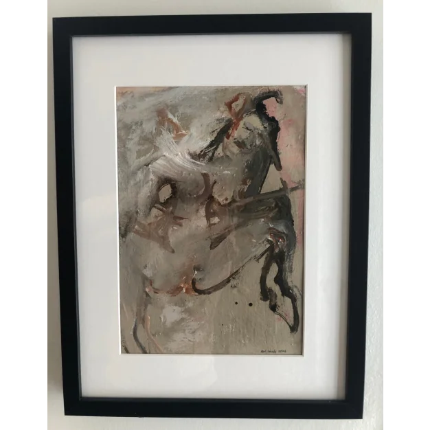 This work is painted with acrylic paint on canvas. The dimensions are 42 x 32 cm and 3.5 cm thick (this includes passe-partout and black frame). The work itself is 29 x 20 cm. Dated and signed in 2023. Directly from the studio. If you want to see the work live, you are always welcome in Weert (NL).