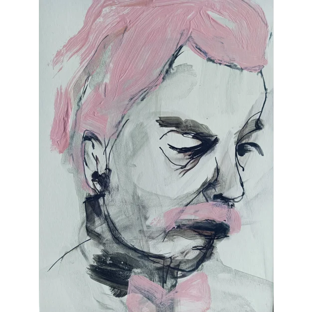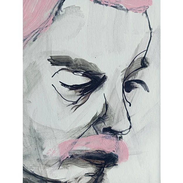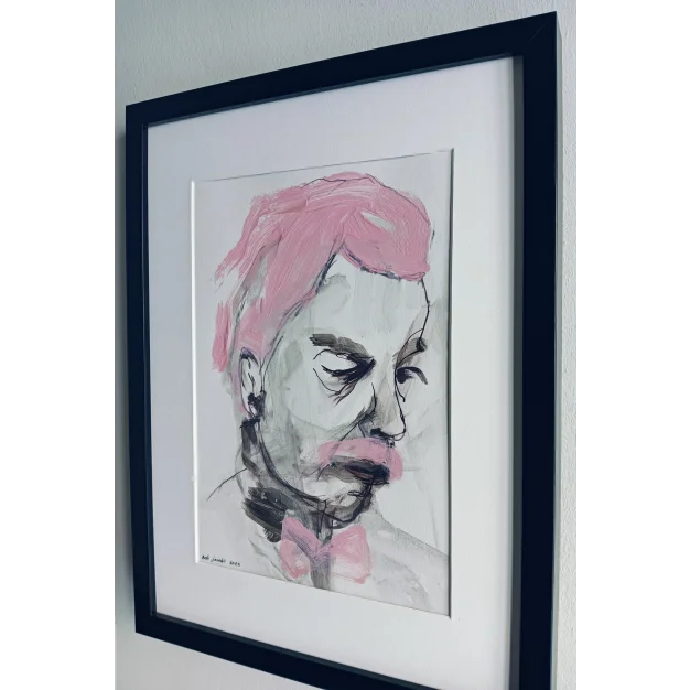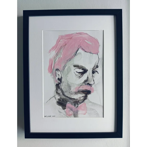 This framed painting is made with acrylic paint and marker on cardboard. The dimensions are 42 x 32 cm and it is 3.5 cm thick (this includes the mat and black frame). The work itself is 29 x 20 cm. Dated and hand-signed in 2025. Directly from the studio in Weert (NL).