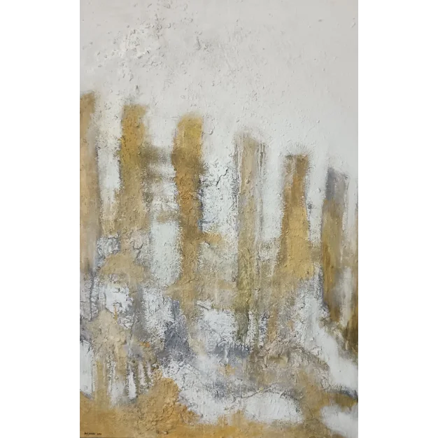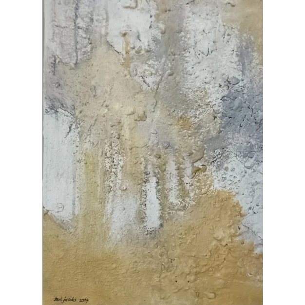 This large abstract painting is made with acrylic paint, texture paint, and charcoal on a linen canvas. The use of pieces of linen, paper, beach sand, and the thicker layers of paint gives the painting a beautiful relief and a somewhat raw look... it is a real eye-catcher in your interior! The dimensions are 150 x 100 cm and it is 4 cm thick. Dated and hand-signed in 2024. Directly from the studio. If you would like to see more works (around 100 pieces, large and small) from me, click on my name (top right) or go to my website: www.robjacobs.art. If you want to see the work live, you are always welcome in Weert (NL).