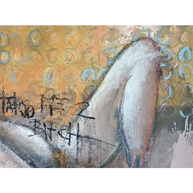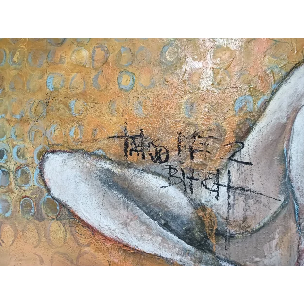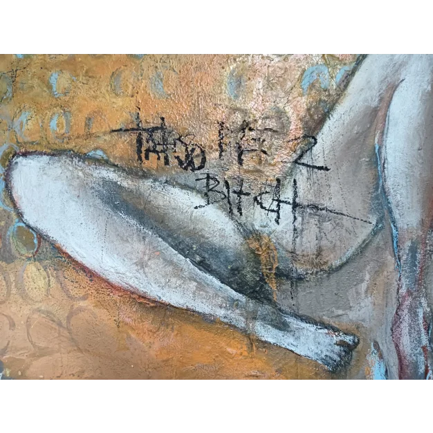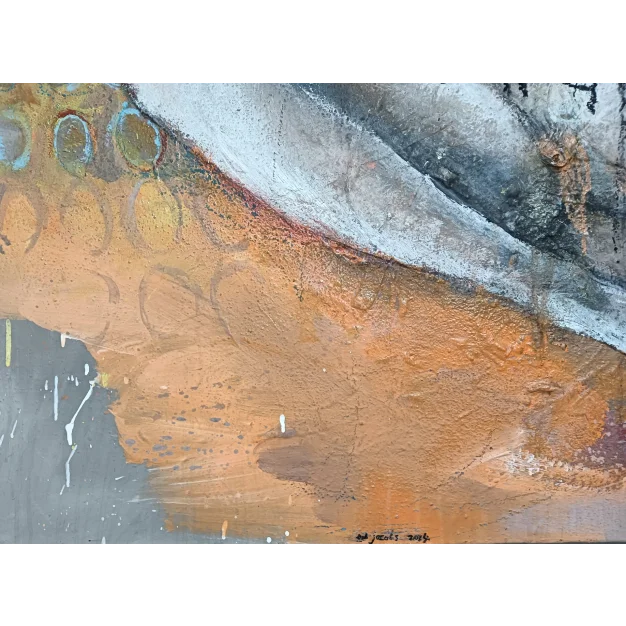 This large abstract painting is made with acrylic paint, spray paint, markers, and oil pastels on a linen canvas. The dimensions are 100 x 120 cm and 2.5 cm thick. Dated and hand-signed in 2024. Directly from the studio in Weert (NL). If you would like to see more works (around 100 pieces, large and small) by me, click on "Rob Jacobs" or visit my website: www.robjacobs.art. If you want to see the work live, you are always welcome in Weert.
