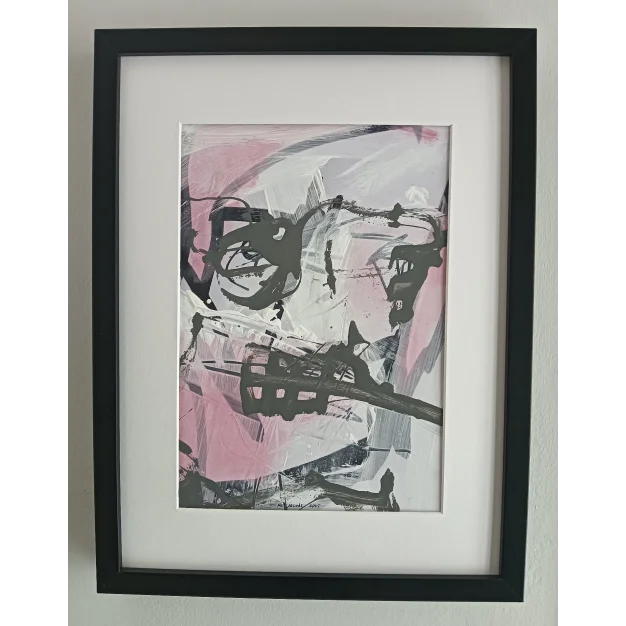 This framed work is made with acrylic paint and marker on cardboard. The dimensions are 42 x 32 cm and it is 3.5 cm thick (this includes passe-partout and black frame). The work itself is 29 x 20 cm. Dated and hand-signed in 2025. Directly from the studio in Weert (NL). If you want to see more works (around 150 pieces, large and small) by me, please visit my website: www.robjacobs.art