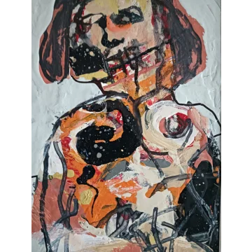 This framed painting is painted with acrylic paint and charcoal on a linen canvas. The dimensions are 32 x 42 cm and 3.5 cm thick (this includes the mat and black frame). The work itself is 20 x 29 cm. Dated and signed in 2017. Directly from the studio. If you want to see the work live, you are always welcome in Weert (NL). My website: www.robjacobs.art