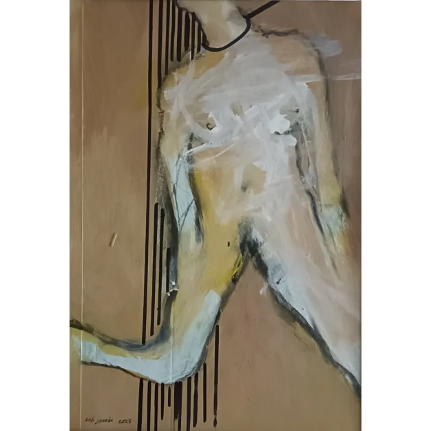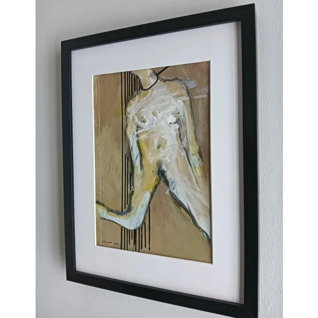 This framed painting is made with acrylic paint and marker on paper. The dimensions are 42 x 32 cm and it is 3.5 cm thick (this includes the mat and black frame). The work itself is 29 x 20 cm. Dated and hand-signed in 2025. Directly from the studio in Weert (NL).