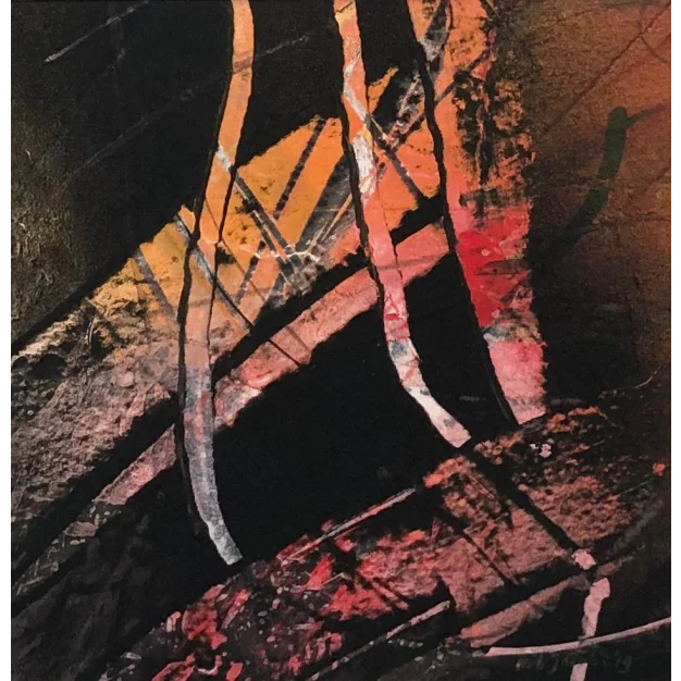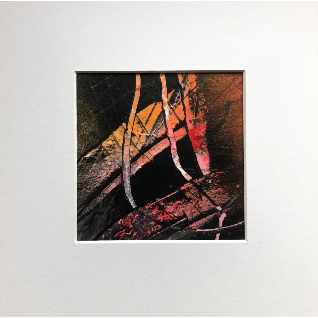 This small framed piece is made with acrylic paint, spray paint, pencil, and marker on watercolor paper. The dimensions are 25 x 25 cm and it is 4 cm thick (this includes the mat and black frame). The piece itself is 12 x 12 cm. Dated and hand-signed in 2019. Directly from the studio. If you would like to see more works (around 100 pieces, large and small) from me, please visit my website: www.robjacobs.art