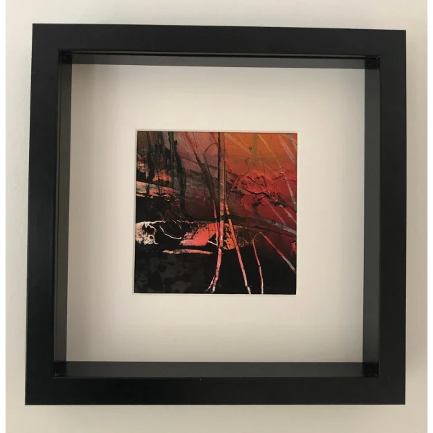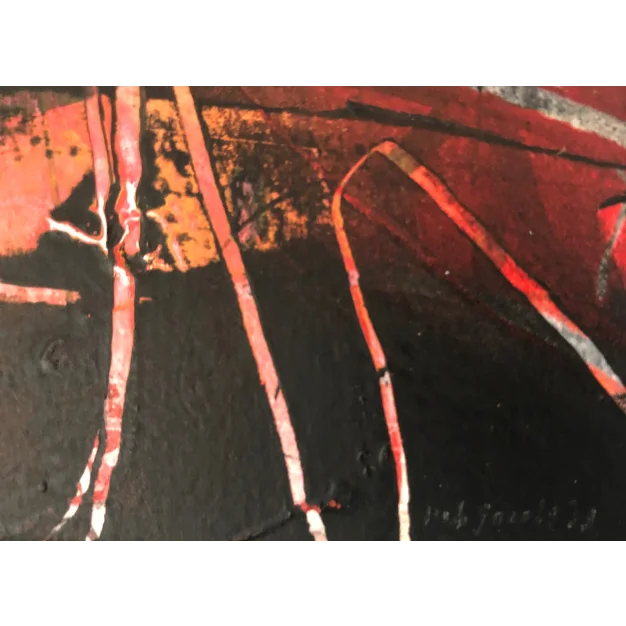 This small framed piece is made with acrylic paint, spray paint, pencil, and marker on watercolor paper. The dimensions are 25 x 25 cm and it is 4 cm thick (this includes the mat and black frame). The piece itself is 12 x 12 cm. Dated and hand-signed in 2019. Directly from the studio. If you would like to see more works (around 100 pieces, large and small) by me, please visit my website: www.robjacobs.art
