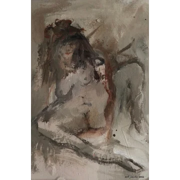 This framed painting is made with acrylic paint and marker on a canvas. The dimensions are 42 x 32 cm and it is 3.5 cm thick (this includes the mat and black frame). The work itself is 29 x 20 cm. Dated and hand-signed in 2025. Directly from the studio in Weert (NL).