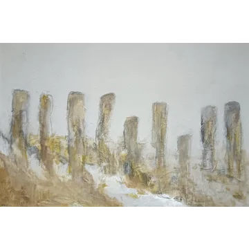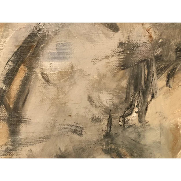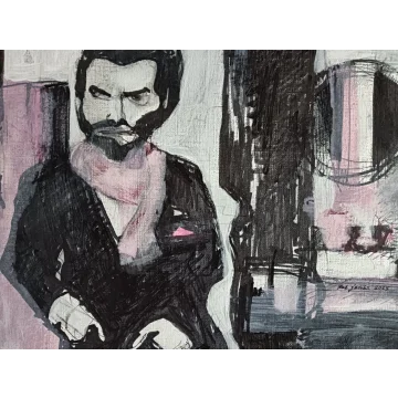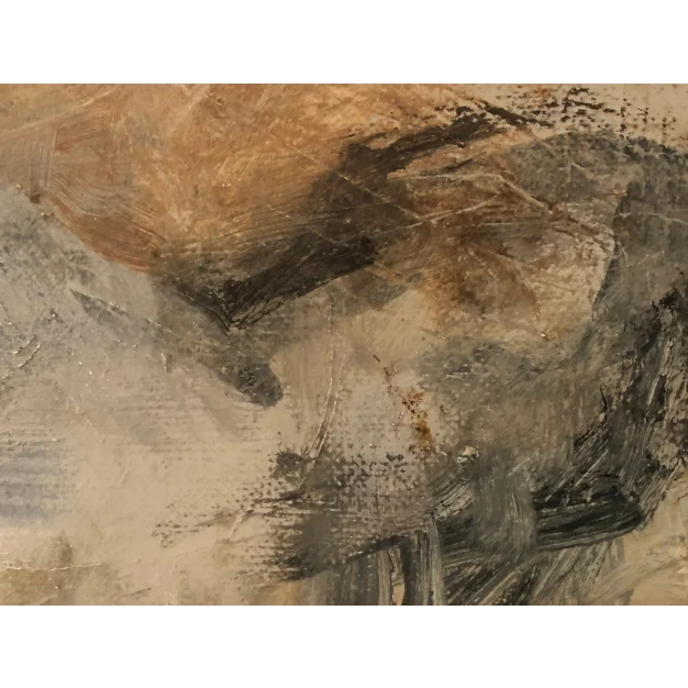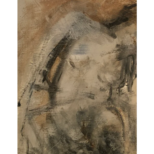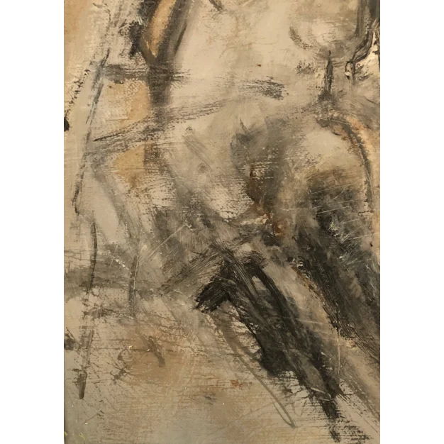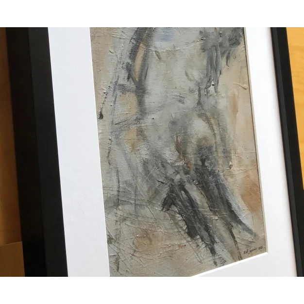 This framed work is made with acrylic paint and charcoal on a canvas. The dimensions are 42 x 32 cm and it is 3.5 cm thick (this includes the mat and black frame). The work itself is 29 x 20 cm. Dated and hand-signed in 2021. Directly from the artist's studio.