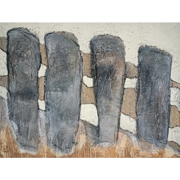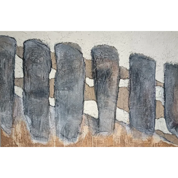 This large painting is made with acrylic paint, texture paint, and charcoal on a linen canvas. By using beach sand and thicker layers of paint, the painting has a beautiful relief. The dimensions are 150 x 100 cm and it is 4 cm thick. Dated and hand-signed in 2024. Directly from the studio. If you would like to see more works (around 100 pieces, large and small) by me, please visit my website: www.robjacobs.art
