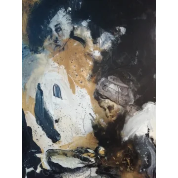 Los materiales utilizados son pintura acrílica, lápiz y carbón sobre papel. Las dimensiones son 42 x 32 cm y tienen 3,5 cm de grosor (esto incluye passe-partout y marco negro). La obra en sí mide 29 x 20 cm. Fechado y firmado en 2023. Directamente del estudio. Si deseas ver la obra en vivo, siempre eres bienvenido en Weert (NL).