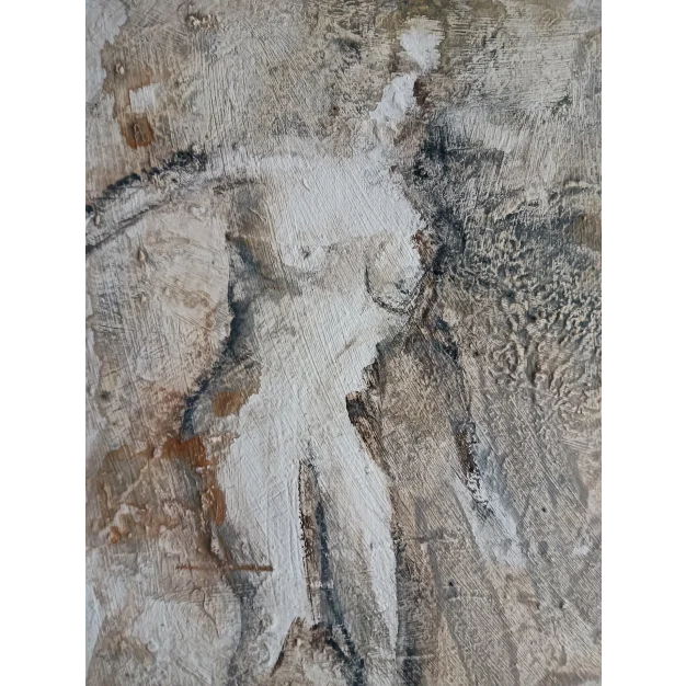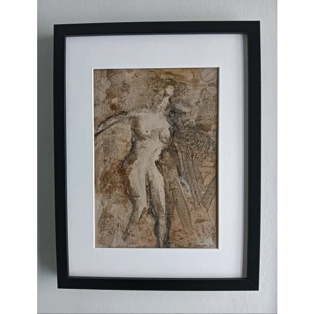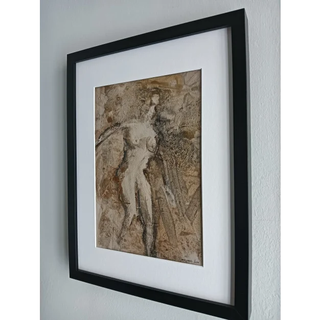 Dit ingelijst kunstwerk is gemaakt met acryl verf en houtskool op een hoogwaardig canvas doek. De afmeting is 42 x 32 cm en is 3,5 cm dik (dit is inclusief passe partout en zwarte lijst). Het werk zelf is 29 x 20 cm. Rechtstreeks uit het atelier in Weert (NL).