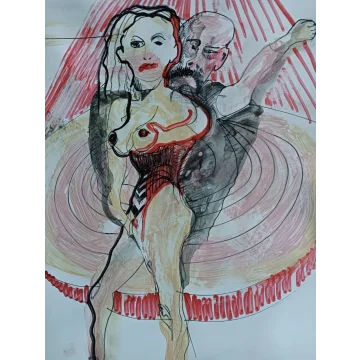 Quest'opera espressiva è stata creata nel 2017. I materiali utilizzati sono vernice acrilica, gesso e pennarello su cartone.