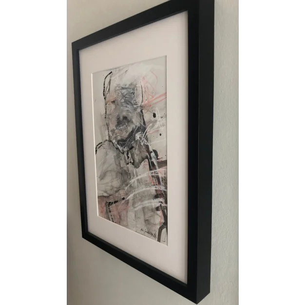 Questo dipinto espressivo è stato realizzato nel 2019. I materiali utilizzati sono vernice acrilica, pennarello, matita e gesso su cartone. Le dimensioni sono 32 x 42 cm e 3,5 cm di spessore (questo include passe-partout e cornice nera). L'opera stessa misura 20 x 29 cm. Direttamente dallo studio. Se vuoi vedere l'opera dal vivo, sei sempre il benvenuto a Weert (NL).