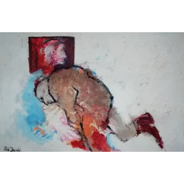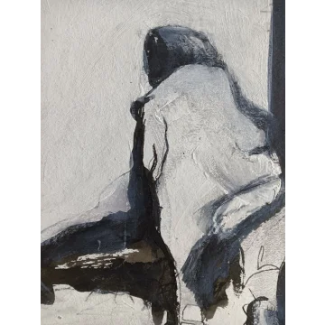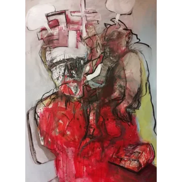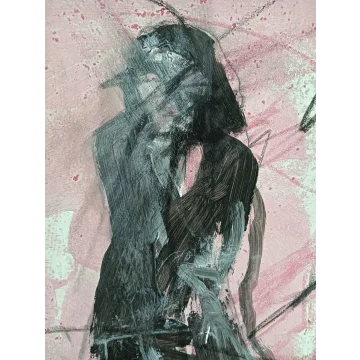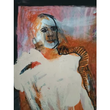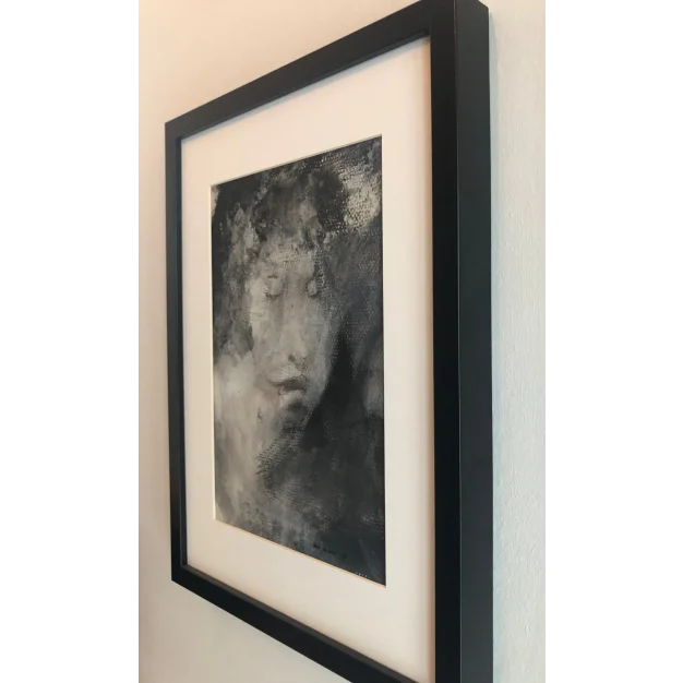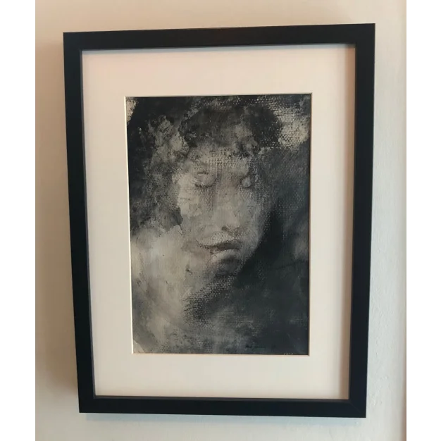 Questo dipinto incorniciato è stato realizzato nel 2017. Le dimensioni sono 42 x 32 cm e 3,5 cm di spessore (questo include il passepartout e la cornice nera). L'opera stessa misura 29 x 20 cm. I materiali utilizzati sono vernice acrilica, matite, pennarelli e carbone su carta da acquerello. Direttamente dallo studio. Se vuoi vedere l'opera dal vivo, sei sempre il benvenuto a Weert (NL).
